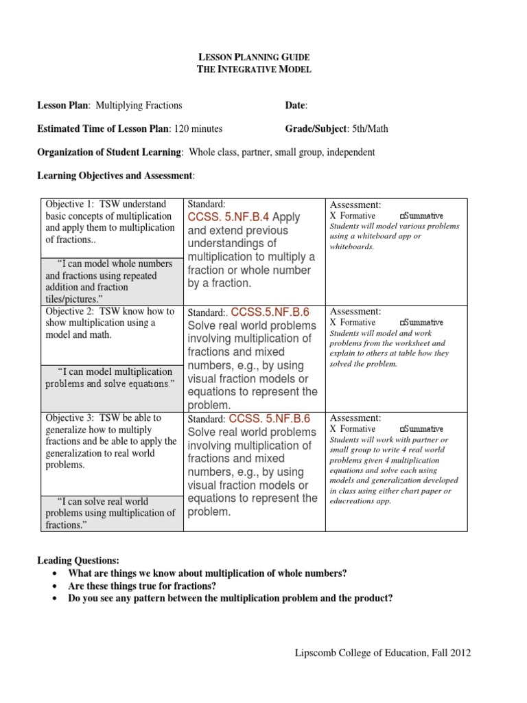 Multiplying Fractions Lesson Plan Fraction Mathematics Multiplication How To Make Pancake Mix