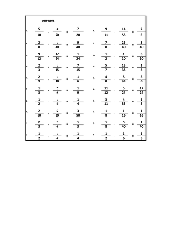 Subtracting Fractions With Different Denominators Worksheets 80 Questions And Answers Teaching Resources How To Lock Excel Cells
